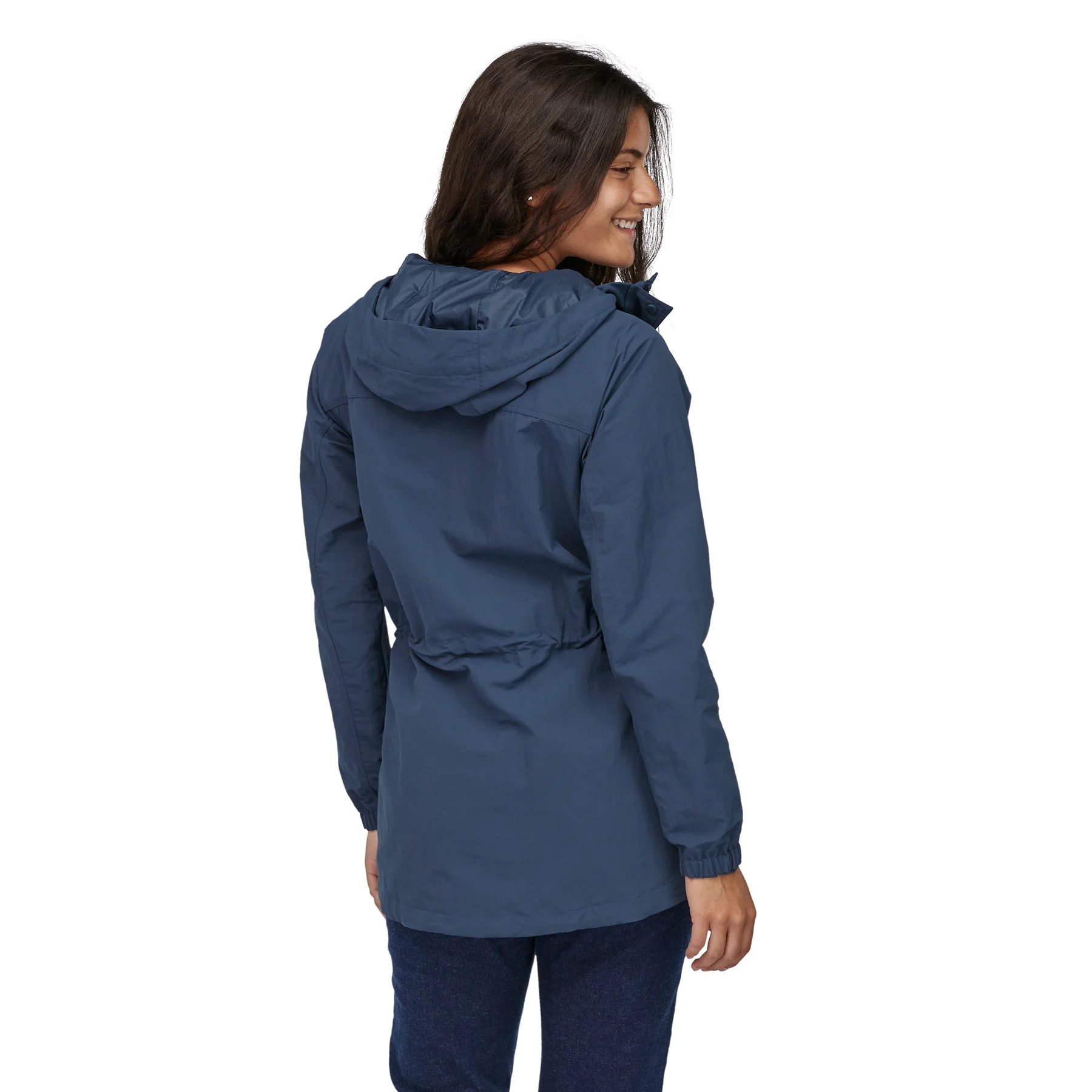 - Three-panel fixed hood has a drawcord around the opening for adjustability, Full-length snapped placket with two-way zipper and storm flap